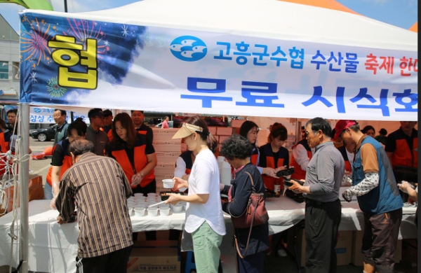 특히 고흥군수협 한여련 분회 회원들은 무료 시식행사에 자발적으로 참여해 약 3000여 명의 참석자들에게 활어회, 낙지 초무침, 미역냉국, 김 등을 나누며 고흥군 수산물의 우수성을 홍보했다.